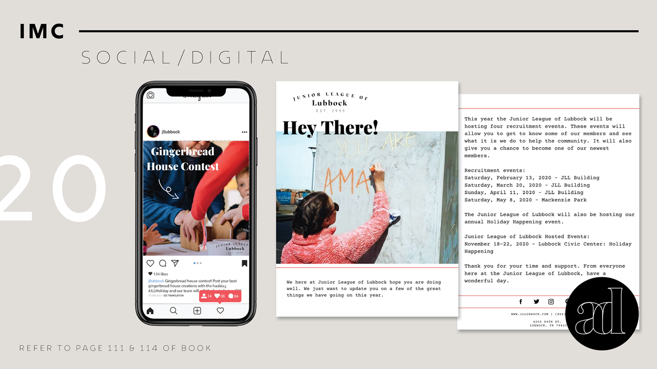 To view the full campaign book for the Junior League of Lubbock which includes an extended situation analysis, research report, integrated marketing communications, and media plan and budget, please view the following.